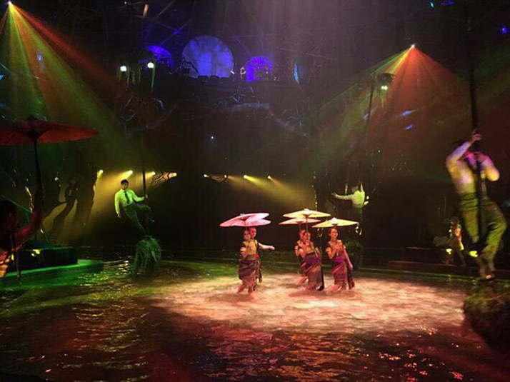 在90分鐘的傣秀表演中,由浩洋電子切割燈、光束燈、圖案燈和染色燈共同組成的頂級(jí)燈光陣容,隨故事情節(jié)的推進(jìn)不斷幻化出各種夢(mèng)幻、神秘的舞臺(tái)效果,為觀眾呈現(xiàn)了一場(chǎng)震撼心靈的視覺(jué)盛宴!