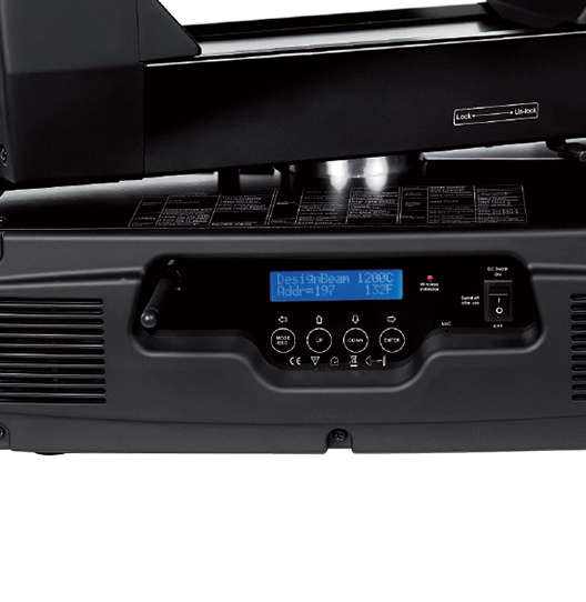可從控臺完成更改DMX地址碼,遙控開關燈泡,機器重設,聲控模式的轉換等功能