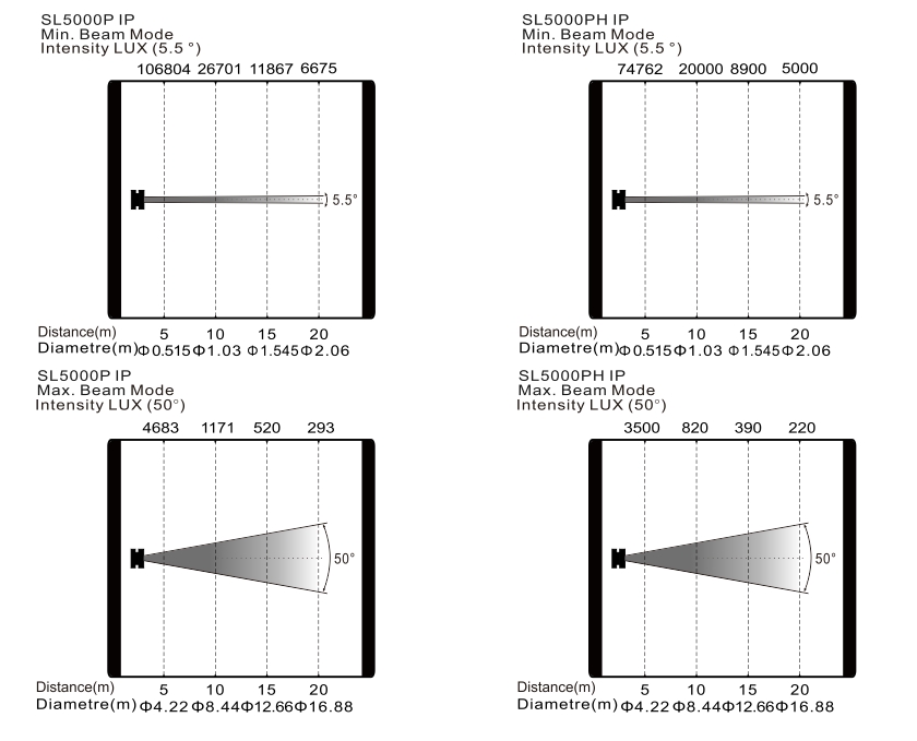顯色指數(shù):Ra>70(SL5000PH IP: Ra>95)