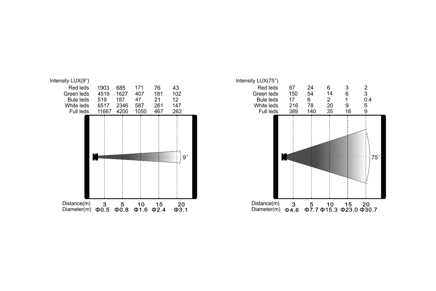 變焦范圍:光斑角:9°-75°