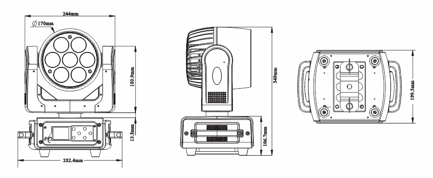 光源:7顆40W大功率RGBW 4合1 LED